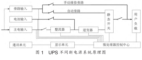 UPS是一個多重保護的交流供電設(shè)備。當(dāng)主電正常時,主電輸入經(jīng)整流開關(guān)控制,首先經(jīng)諧波濾波器,再經(jīng)主電整流變換成純凈的直流電,濾除主電中的干擾,然后通過逆變器將直流電變換成純凈的正弦交流電輸出,同時給蓄電池充電;當(dāng)UPS連接上電池組時對電池組的電壓和電池進行測量,整流器進入電流和電壓雙環(huán)控制,當(dāng)電池電壓低時為恒流模式充電,當(dāng)電池電壓達到浮充電電壓時,自動轉(zhuǎn)為恒壓充電模式。當(dāng)主電異常時,則將蓄電池儲存的直流電逆變成交流輸出,保證用戶負載長期處于不斷電高質(zhì)量電源下可靠運行;當(dāng)逆變器關(guān)閉或故障時則自動轉(zhuǎn)為旁路供電。手動維修旁路保證在不斷電的情況下對UPS進行維護或檢修。